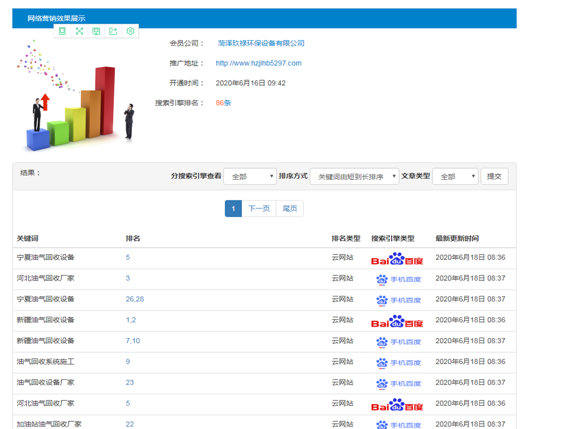 油气回收行业全网推广测试两天上词情况